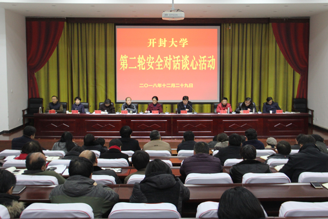 12月29日上午,365官网在行政楼一楼会议厅开展第二轮安全对话谈心活动。全校副科级以上干部及教授、博士等高层次人才参加了此次活动。