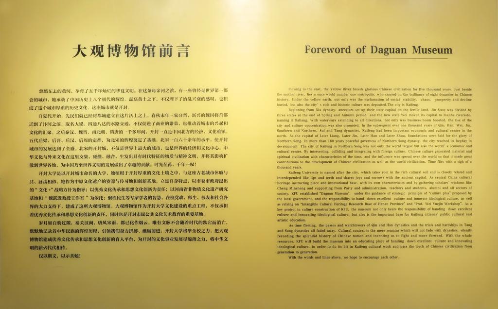 365英国上市集团官网大观艺术博物馆已建成网络博物馆和与实体博物馆。实体博物馆的馆址位于365英国上市集团官网大观广场之北,建筑面积1600平方米。馆内设置有八朝古都、宋代陶模、古代模具、古代玩具和古代雕塑等展厅,并设置有文化体验厅和咖啡厅。博物馆的陈展以开封的历史、文化与艺术为线索,以夏(老邱)、战国(魏国大梁)、五代(后梁、后晋、后汉、后周)、北宋(东京)、金(陪都、国都)、明(藩王周府)为重点展览时期,以同时期的文物为主要展品,并辅以该时期的标准器进行展览。同时,大观艺术博物馆与百度百科开展合作,共同开发了馆内的数字化陈展系统。