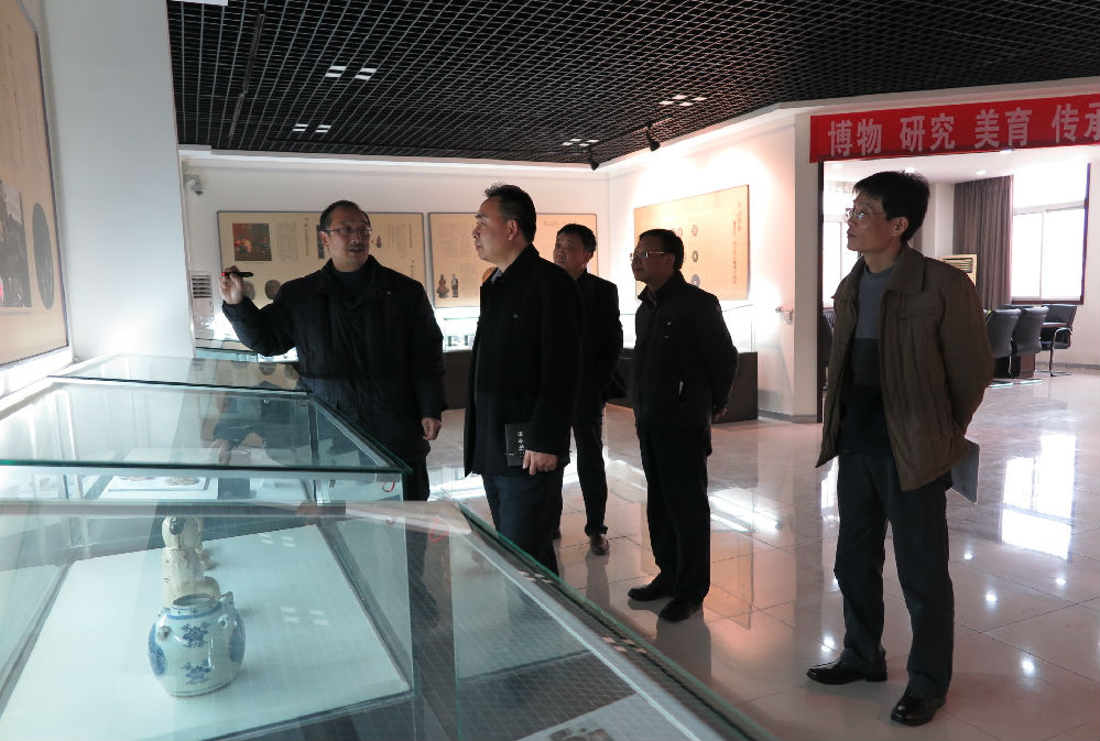 本站讯 3月1日下午,开封市财政局副局长郭庆伟同志一行参观365官网大观博物馆。365英国上市集团官网副校长万世明、计划财务处处长孟凡秋、艺术设计学院院长魏跃进等陪同参观。