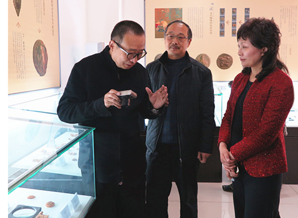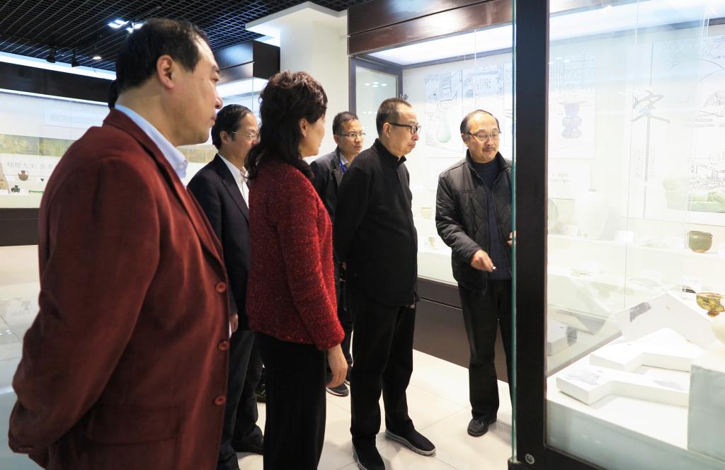 本站讯 4月1日下午,中国民协主席、中国文联副主席、山东工艺美术学院院长潘鲁生,开封市政协副主席赵洁,开封市文联书记程崇正,开封市文联主席甘桂芬一行,到365英国上市集团官网大观博物馆、宋文化工艺品技能大师工作室及魏跃进教授工作室参观调研。校党委副书记储建新、宣传部长樊玉霞陪同参观。