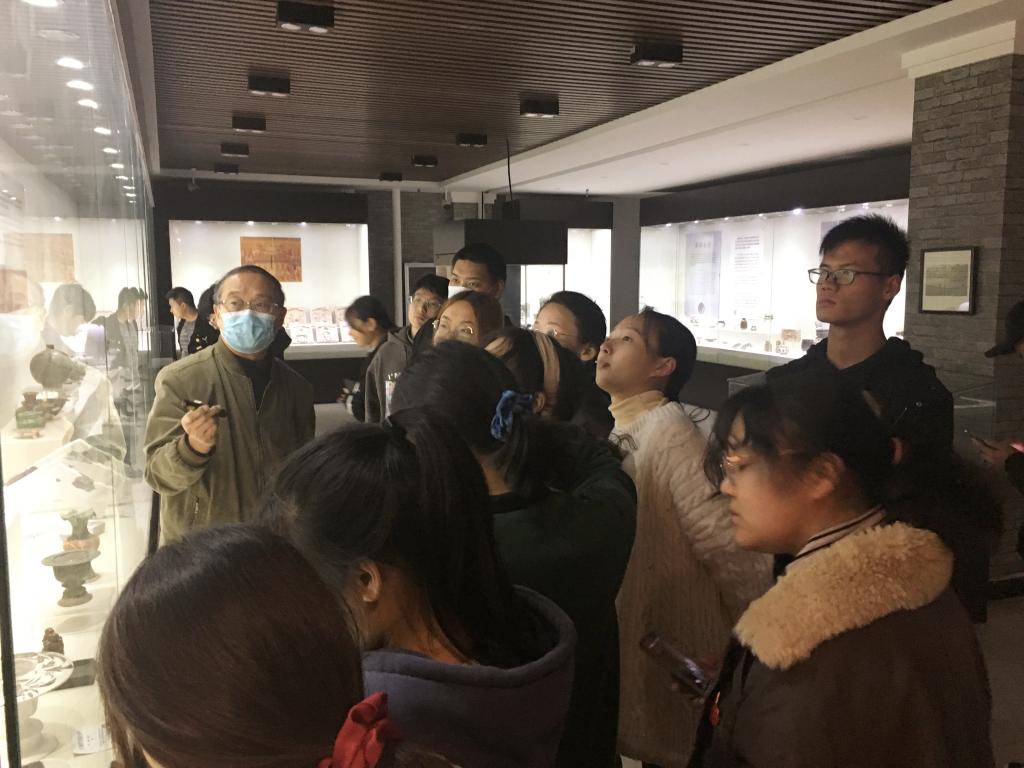 本站讯 为有效的将文化资源优势转化为教学资源,探索应用型人才培养方式,为学科及专业发展搭建人才培养基地,大观博物馆与艺术设计专业开展了合作教学。18日,在魏跃进教授的带领下, 2020级艺术设计专业学生到馆进行实地教学。
