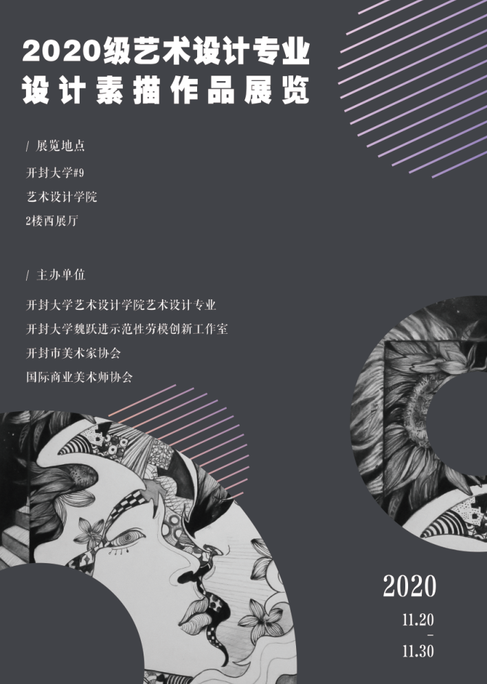 2020年12月与开封市美术家协会等机构合作,推出走向设计---2020级艺术设计专业学生设计素描作品展览。