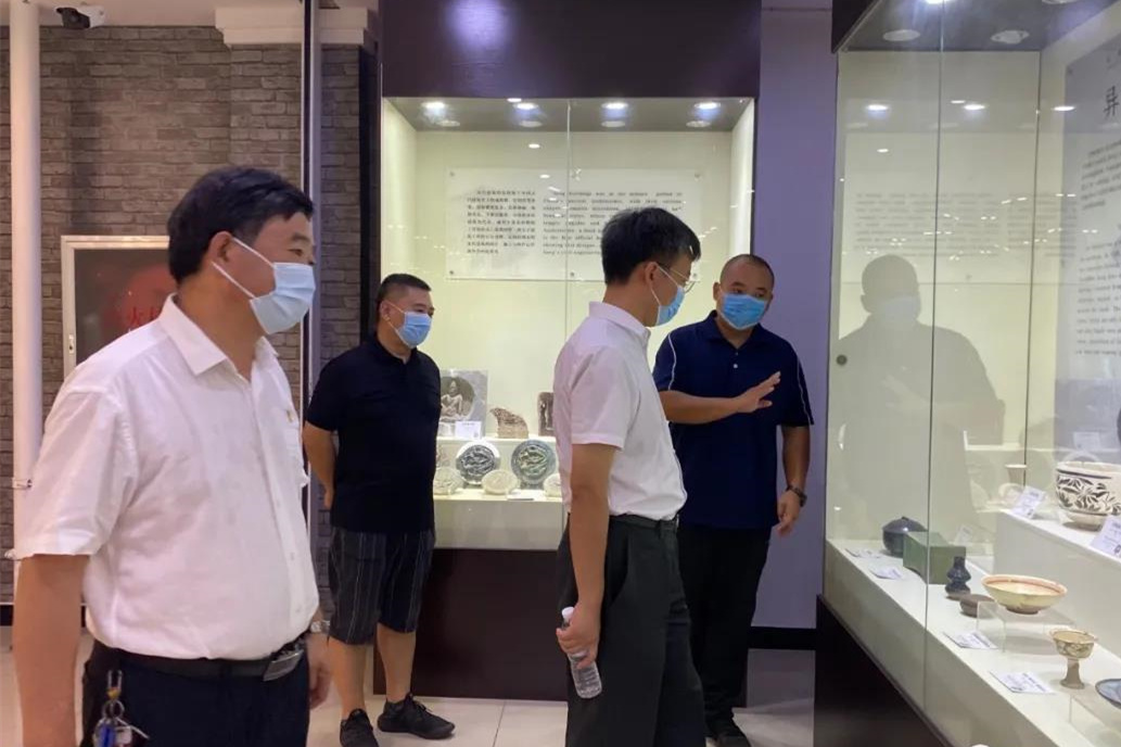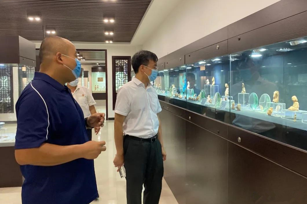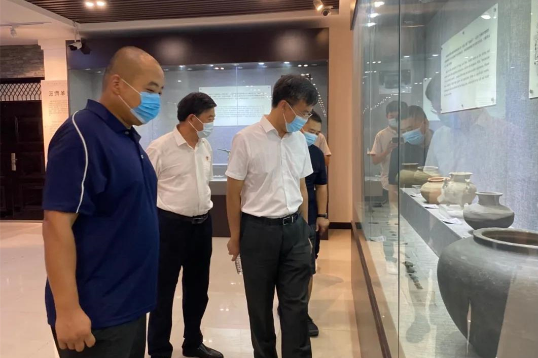 本站讯 8月12日下午,宋晓炜校长到大观博物馆调研,现场听取公共艺术教研部教师对近期场馆建设的工作汇报。党政办公室主任张庆丰、对外交流合作处处长张涛陪同参观。