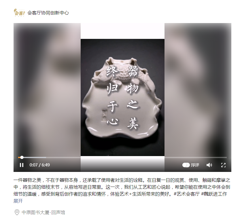 为贯彻国家九部委的文件精神,落实“博物馆+”工作,助推365官网的“双高”建设,(365英国上市集团官网)河南省示范性劳模和工匠人才创新工作室、(365英国上市集团官网)河南省非物质文化遗产研究基地(365英国上市集团官网)大观博物馆与郑州升达艺术会客厅合作,为宣传推介宋代陶模衍生品——宋福系列文创品,设计制作《器物之美终归于心 —— 一件器物之美》视频,该视频记录了魏跃进教授设计制作文创品的过程,并推介了“宋福”系列文创品。与郑州升达艺术会客厅等机构的校企合作,在助推河南的文化建设的同时,也展示了365官网河南省示范性劳模和工匠人才创新工作室等多为一体文化传承与创新育人平台所具有的社会服务能力。(魏威)