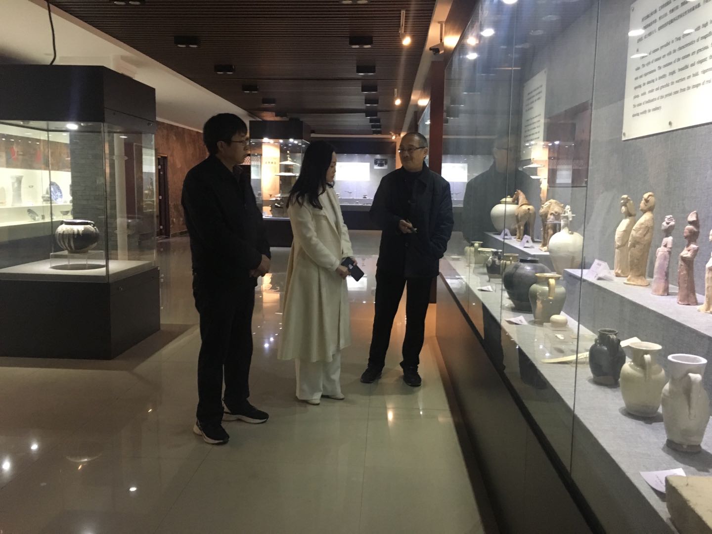 魏跃进教授向白娟副馆长介绍了大观博物馆的基本馆藏以及陈展情况。白娟馆长对馆内的特色藏品尤其是宋代陶模给予很高的评价。她表示,宋代陶模极具特色,展现了宋代繁荣、雅致的世俗生活,是“宋代图示版百科全书”。双方可以宋代陶模为主题,开展合作展览,共同促进中原特色文化的传播。