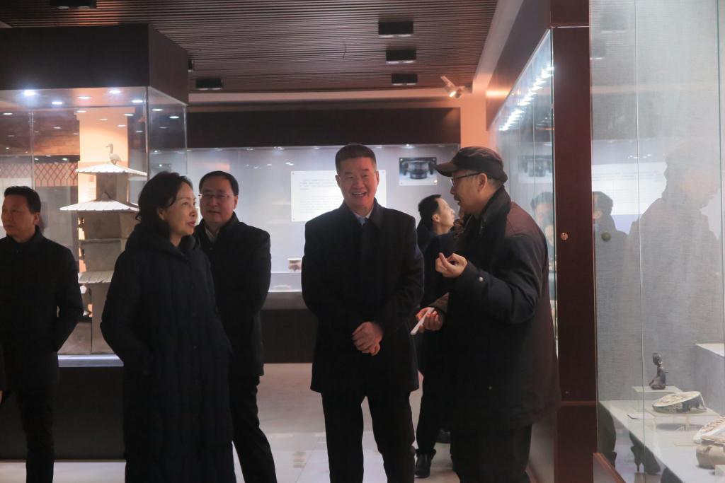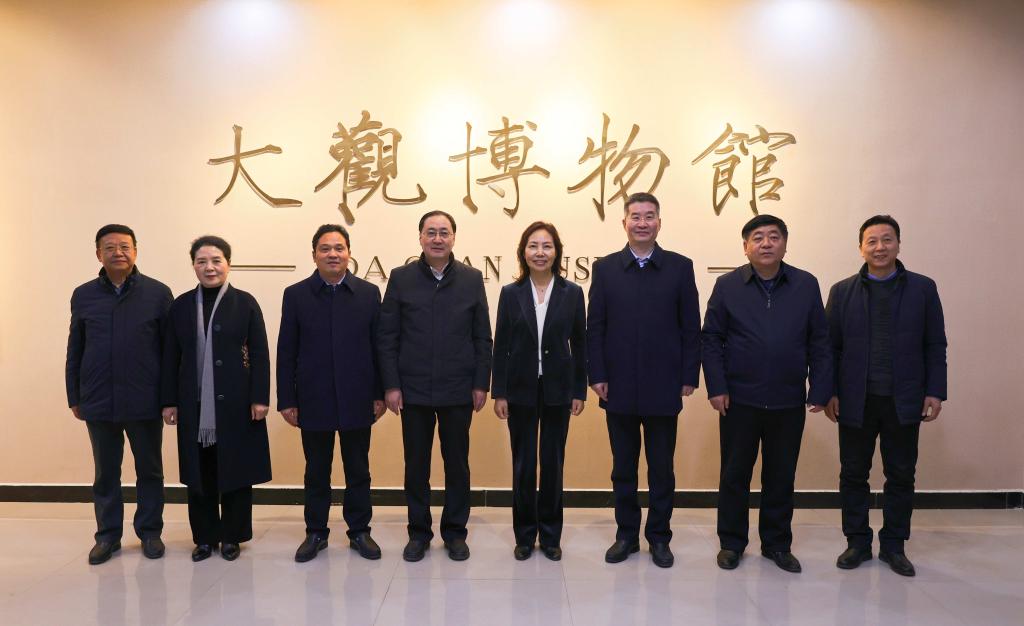本站讯 12月27日下午,黄淮学院党委书记刘先省、校长刘彦明带领校领导班子成员及党政办公室相关人员莅临大观博物馆参观考察。365官网党委书记谭贞、副校长万是明以及相关部门负责人陪同考察。
