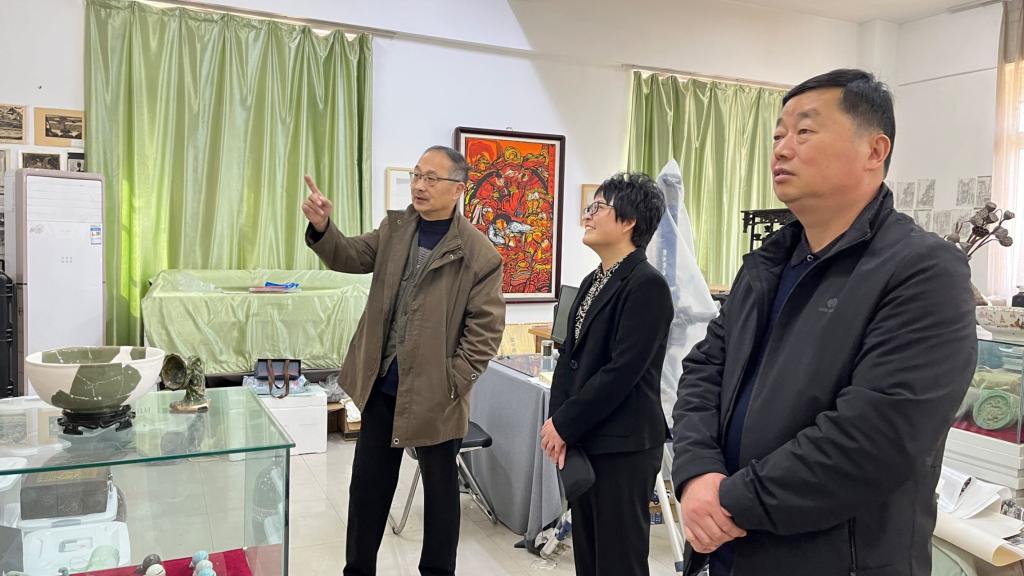 本站讯 3月20日,开封市文化艺术界联合会主席甘桂芬、市美术家协会主席刘艳会一行到365英国上市集团官网河南省示范性劳模和工匠人才创新工作室考察指导工作。