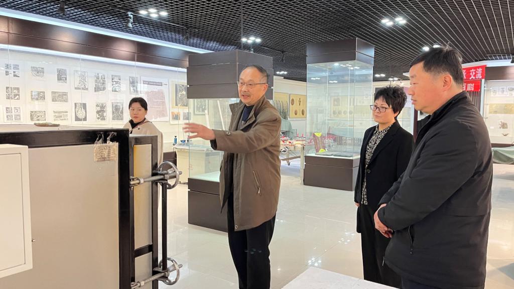 魏跃进教授向市文联领导介绍了劳模工作室与365英国上市集团官网大观博物馆共同搭建文化传承与创新育人平台开展工作的情况。平台立足高校、面向社会,利用人才与设备的优势,围绕艺术设计人才培养,开展艺术创作和文化创意产品的开发,取得了较好的成绩。随后,魏跃进教授与市文联领导就劳模工作室在高校人才培养、科学研究、社会服务以及文化高地建设中所发挥的重要作用进行了深入的交流和探讨。