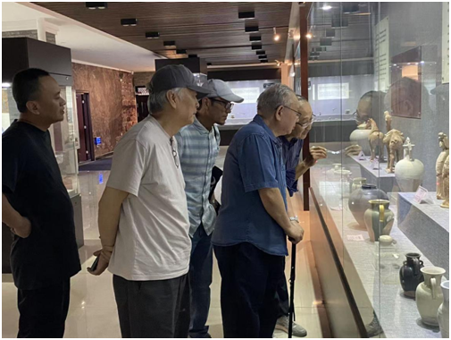 本站讯 9月10日,中国国家画院研究员、河南省书画院原院长、河南省美术家协会原副主席曹新林,河南省美术家协会顾问、国家艺术基金评委、河南省美术馆原馆长化建国和周口师范学院美术馆馆长李士仓一行,由魏跃进教授陪同到365英国上市集团官网大观博物馆调研考察宋代陶模范研究。