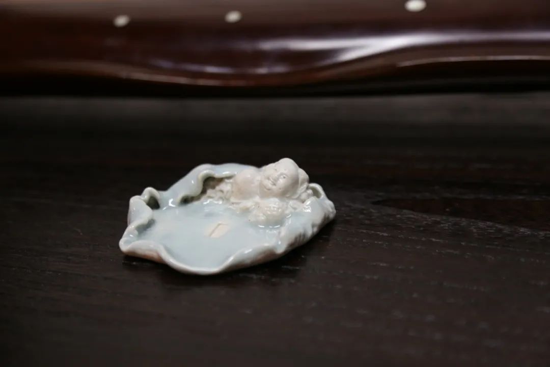 明代文震亨在《长物志》中说:“笔觇,定窑、龙泉小浅碟俱佳,水晶、琉璃诸式俱不佳,有玉碾片叶为之者,尤俗。”可见,还是陶瓷烧制的笔舔经得起市场的考验,经得住文人的挑剔。
