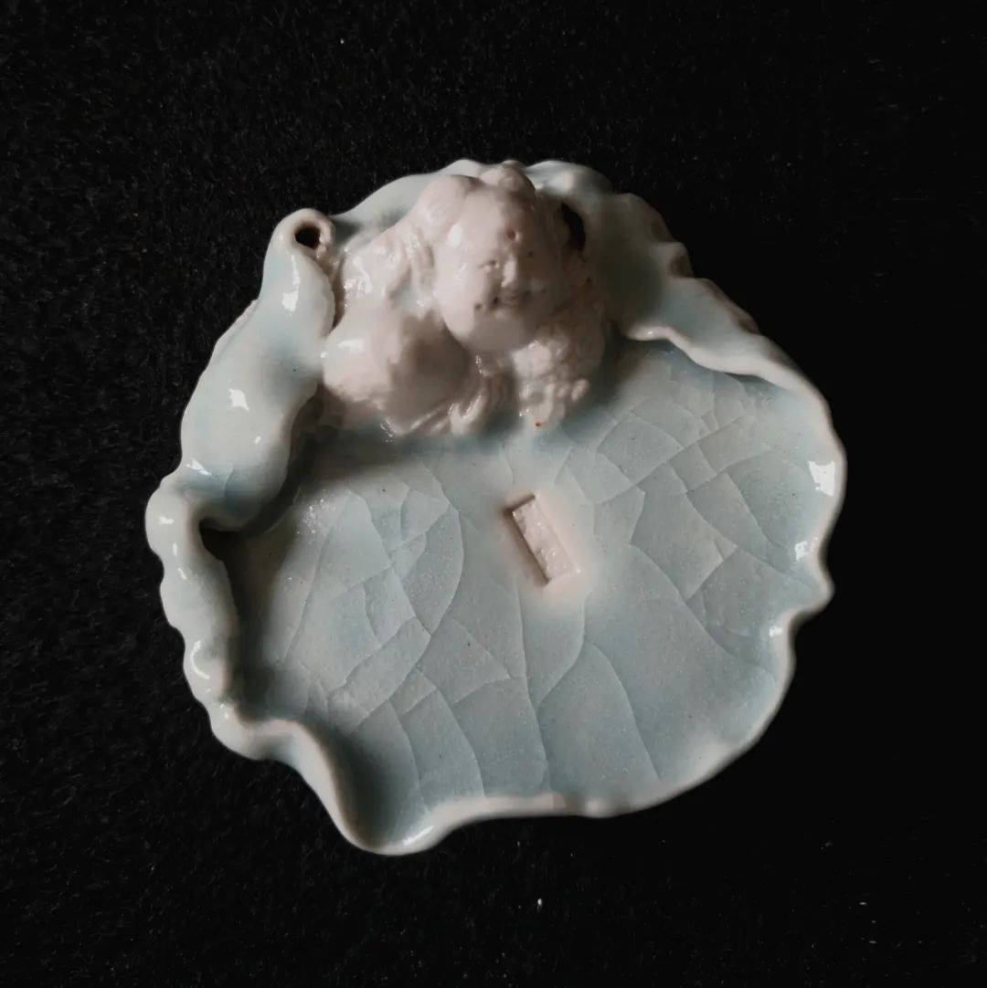笔舔的造型大多是片叶型的小浅碟,材质多种多样,但以陶瓷最为常见,也不乏水晶、琉璃、玉石等材质。由此可见,笔舔虽小,却足够尊贵。在很多文人眼中,笔舔已不仅仅是文房用品,而是赏玩之物,是可以随身携带的,供文人之间相互亮宝,斗雅的宝物。