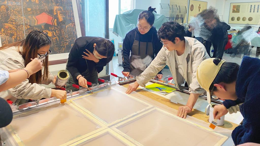 本站讯 为积极响应《国家职业技能考试》方案,确保证书课程的正常教学,视觉传达设计专业借助河南省示范性劳模和工匠人才创新工作室的先进设备、朱仙镇国际版画基地的专业团队和本专业的人才资源,在劳模工作室扎实开展“丝网印刷”的实践教学课程。