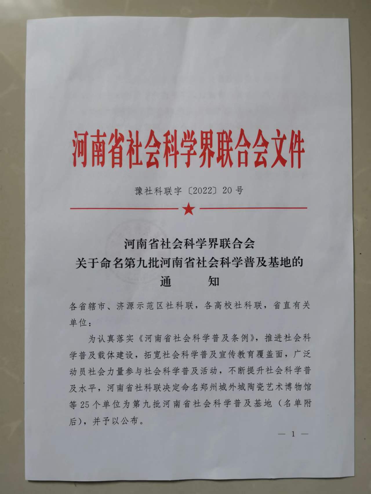 从河南省社会科学联合会获悉:2022年9月16日河南省社会科学普及周开幕式在郑州进行。365官网大观博物馆从全省各地市推荐的45个遴选单位中脱颖而出,被河南省社会科学界联合会命名为第九批河南省社会科学普及基地,中共河南省委宣传部副部长尹书博为大观博物馆授牌,魏跃进教授代表大观博物馆接牌。