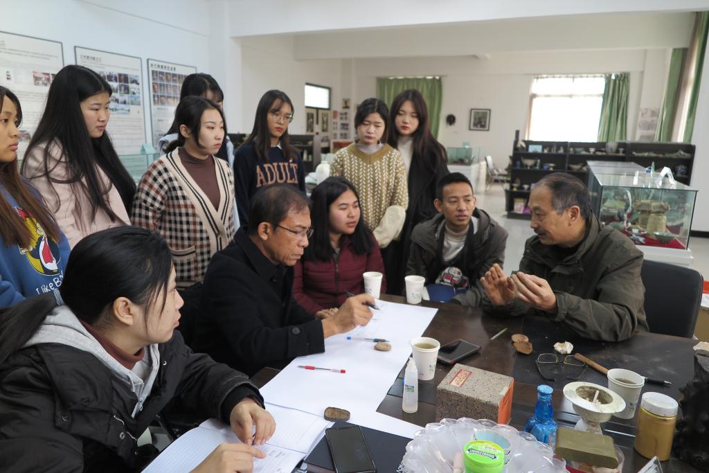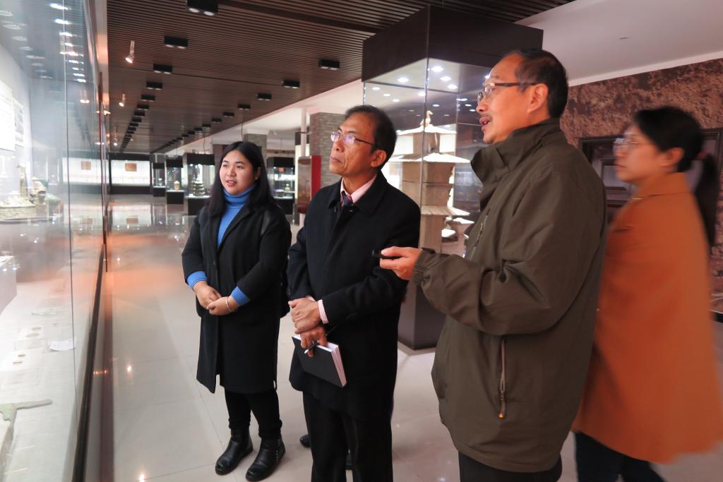 本站讯 11月13日,泰国Mahasarakham大学艺术学院院长、博士生导师素帕猜(Singyabuth Supachai)教授及其博士生到我馆进行研学交流。魏跃进教授接待了素帕猜教授,带领素帕猜教授参观了博物馆并对文物进行了介绍。