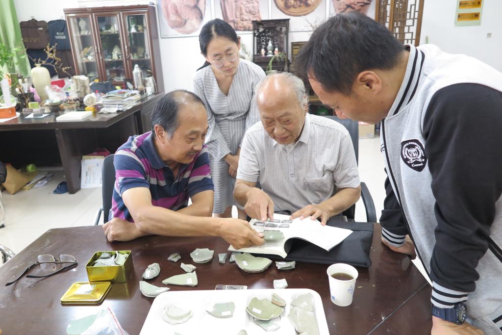 现场,何浩庄先生将开封出土的宋代青瓷进行分类对比,并与在场的教师一起探讨了宋代官窑的工艺及审美特征、两宋官窑之间的共性与区别、宋代官窑与同时期其他窑口的关系等。