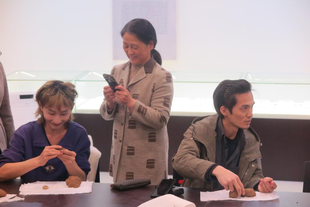 清华美院师生听取了魏跃进教授对开封历史文化的介绍,仔细参观了博物馆陈展的藏品。文中言教授对大观博物馆文化传承和创新育人平台建设给予了高度评价。他表示,大观博物馆藏品丰富,尤其是宋代陶模,真实、接地气,方寸之间,尽显宋人生活情致,具有极高的艺术价值。对宋代陶模开展研究,不仅可以提升学生的人文、审美素养,同时有助于提高学生的专业技能。随后,文中言教授师生一行来到体验厅,亲身体验宋代陶模的翻制过程。