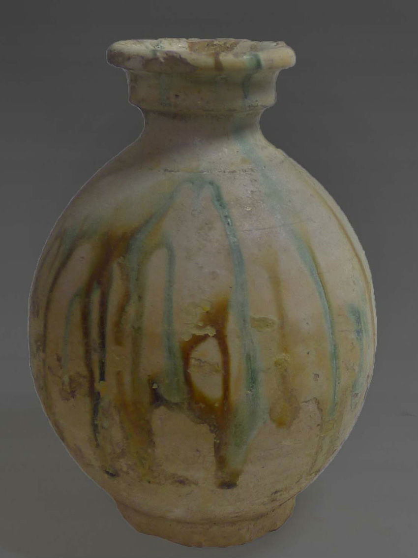 三彩盘口壶 唐代
