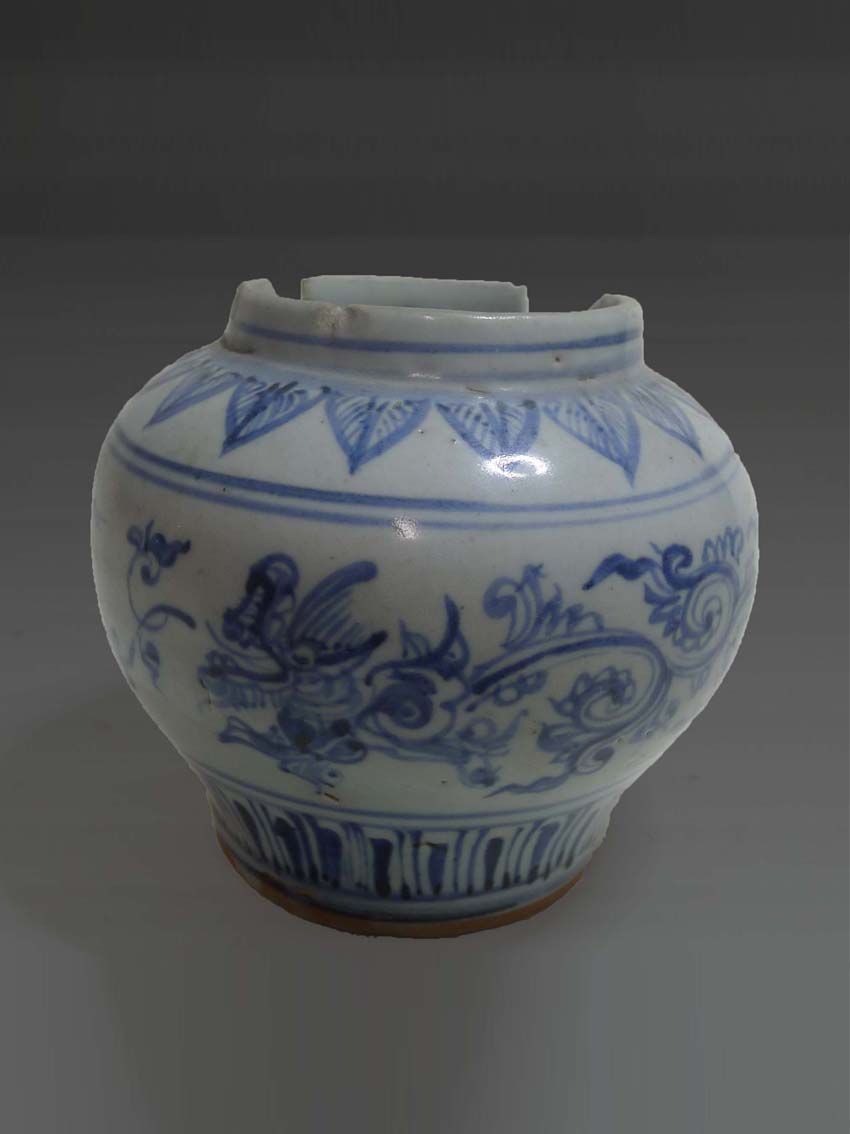 青花草龙纹罐 明代