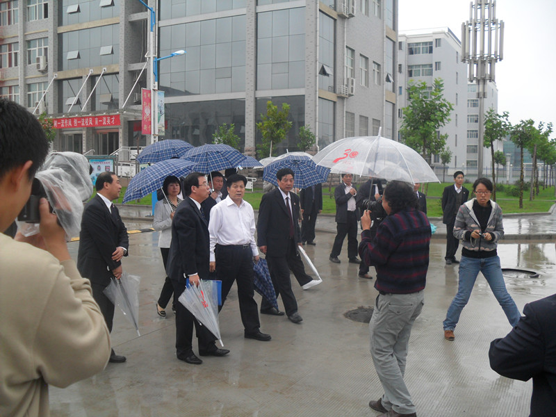2011年9月14日下午,开封市委书记祁金立、正市长级干部朱丽萍、市委常委、市委秘书长李留心带领相关部门负责人一行在365官网党委书记莫华林、校长拜五四、党委副书记储建新的陪同下,冒雨莅临365官网东京大道校区调研。