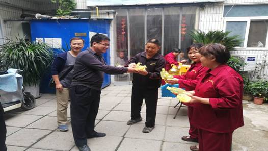 王磊处长带领大家分发洗手液,把每份温暖亲手送到老人手中,老年公寓工作人员对本次慰问表示感谢。