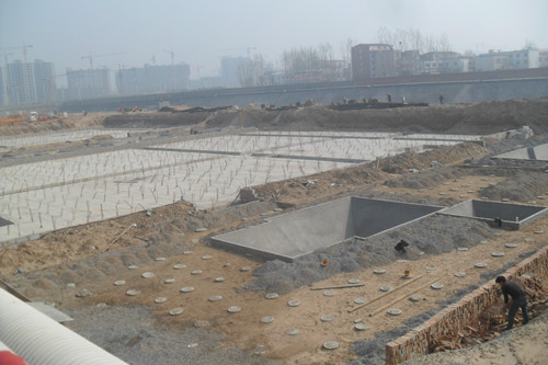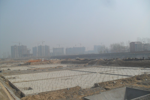 1、教师周转房部分基槽验收,人防部分垫层完成、绑扎底板钢筋进行中,地库验槽完毕﹙见下图﹚;