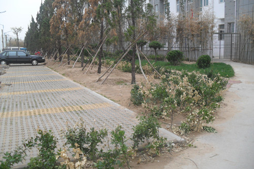 5、新宿舍楼西边砌花坛;