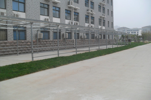 3、行政楼北侧自行车棚安装进行中(见下图);