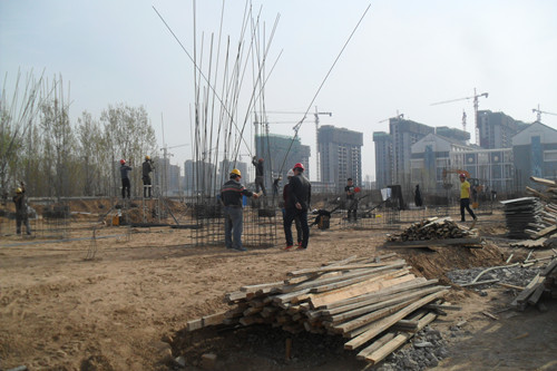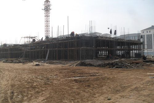 S6、S7两栋宿舍楼建筑面积均为10847.05平方米,7层框架结构,由北京城建建设工程有限公司以BT模式承建,由河南开大工程管理有限公司监理,于3月4日正式开工。S6、S7两栋宿舍楼前期进行了地质和文物勘察、施工图设计、审查、土壤氡检测、施工、监理合同的谈判、起草、签订和手续办理工作,进行了“三通一平”工作。目前,该工程按计划进行,S6宿舍楼正在进行一层顶板钢筋绑扎施工,S7宿舍楼正在进行一层纵向钢筋连接、电渣压力焊施工(见下图);
