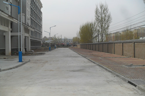 机电实训楼北侧道路施工基本完毕,待砼标准养护试块检测结果出来后进行竣工验收(见下图);