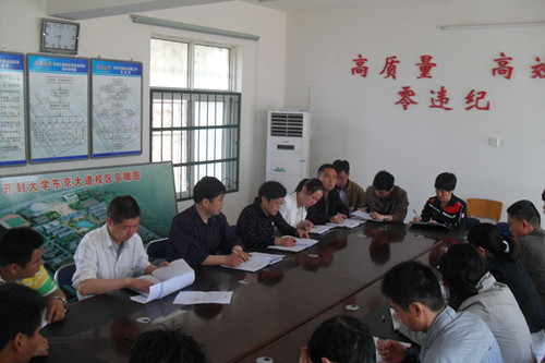 5月2日上午,全体现场工作人员例会在指挥部召开,会议由校纪委副书记(监察室主任)赵海胜主持,指挥部现场工作人员及监理单位代表参加了会议。