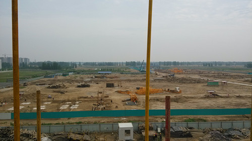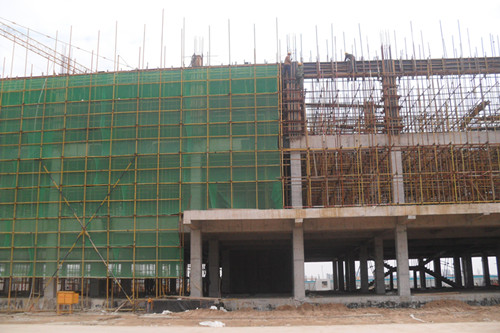 (五)BT项目:主教测桩80%,宿舍楼基础浇筑完成45%,其它楼基础钢筋绑扎50%。(见下图)