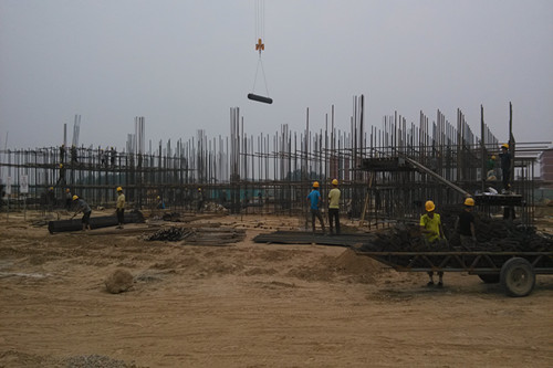 (五)BT项目进展情况:宿舍楼8#、9#一层浇筑完毕,10#、11#一层模板搭设工美、财经、管理、餐厅、实训中心一层钢筋绑扎(见下图)