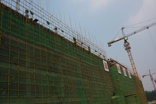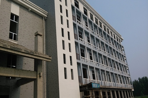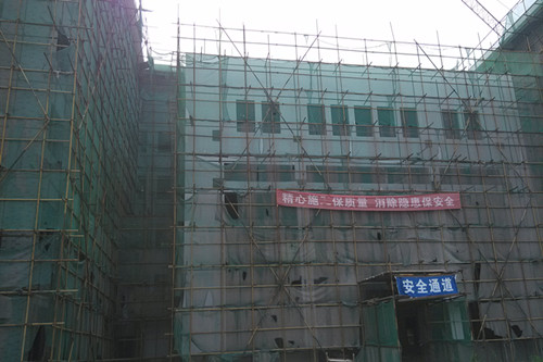 (三)行政楼外墙装饰、问题整改中。(见下图)