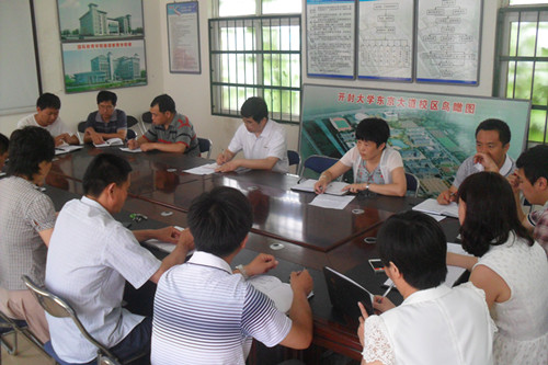 6月24日,全体现场工作人员例会在指挥部召开,会议由校纪委副书记(监察室主任)赵海胜主持,指挥部现场全体工作人员参加了会议。