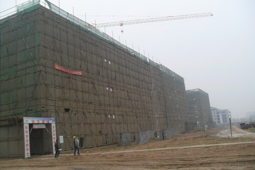 3.宿舍主体结构完成,二次结构四层以下砌筑外墙(见下图)