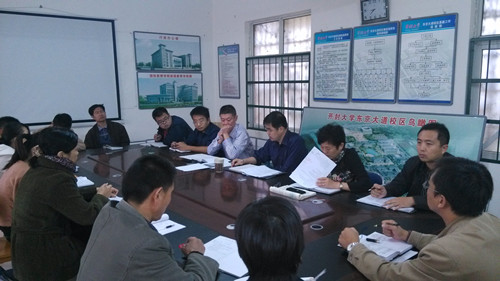 最后,耿校长总结:一、围绕学校基础设施(升本目标)、土地面积,应加快后期各项建设进度。二、按照市里会议纪要精神,后期所有工程按BT模式进行。三、为圆满完成升本任务、搬迁任务,大家对各项工程要继续严格把关,保证质量。四、办公室改造问题要有规划,整体规划要倒计时,由工程组、综合组和专家组拿出意见,大家多沟通、多研究。五、工作要有力度、决心,大家要统一思想,整体推进各项工作进度。