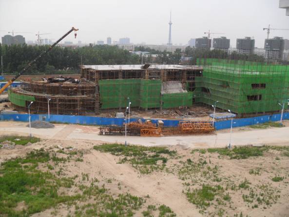 (一)国继教楼三层主体完工,四层柱子绑钢筋、支模板进行中