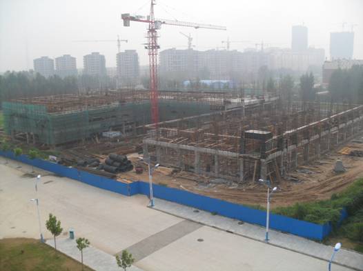 (二)机电实训楼教学区二层框架完成,车间部分主体框架施工中(见下图)