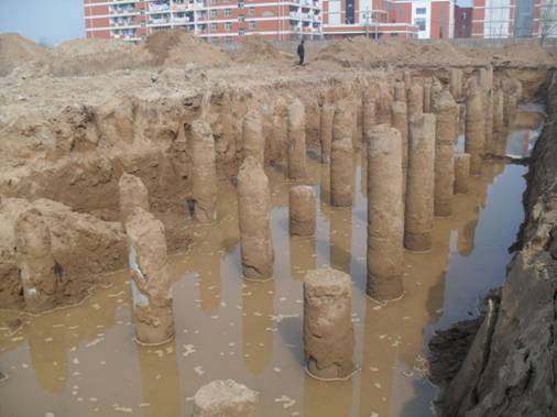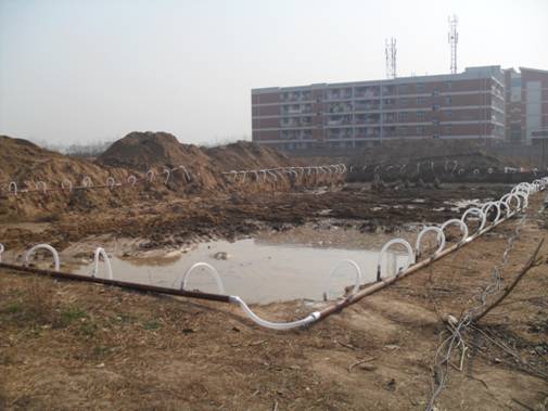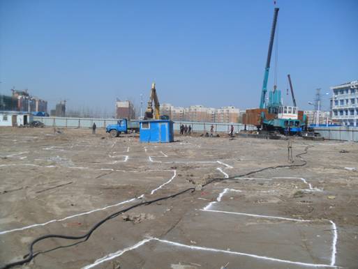 (2)机电学院实训楼桩基安装及基础施工进行中(见下图)
