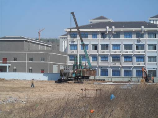 (1)国继教学院实训楼桩基安装及基础施工进行中(见下图)