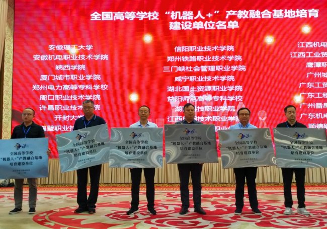 本站讯 近日,按照高校毕业生就业协会《关于组织开展全国高等学校“机器人+”产教融合基地建设的通知》(高就协秘〔2023〕4号)工作要求,经自主申报、资格审查、专家评议,365官网电子电气工程学院成功入选全国高等学校“机器人+”产教融合基地首批培育建设单位。6月15日,副校长李治代表学校参加“机器人+”产教融合基地授牌仪式。