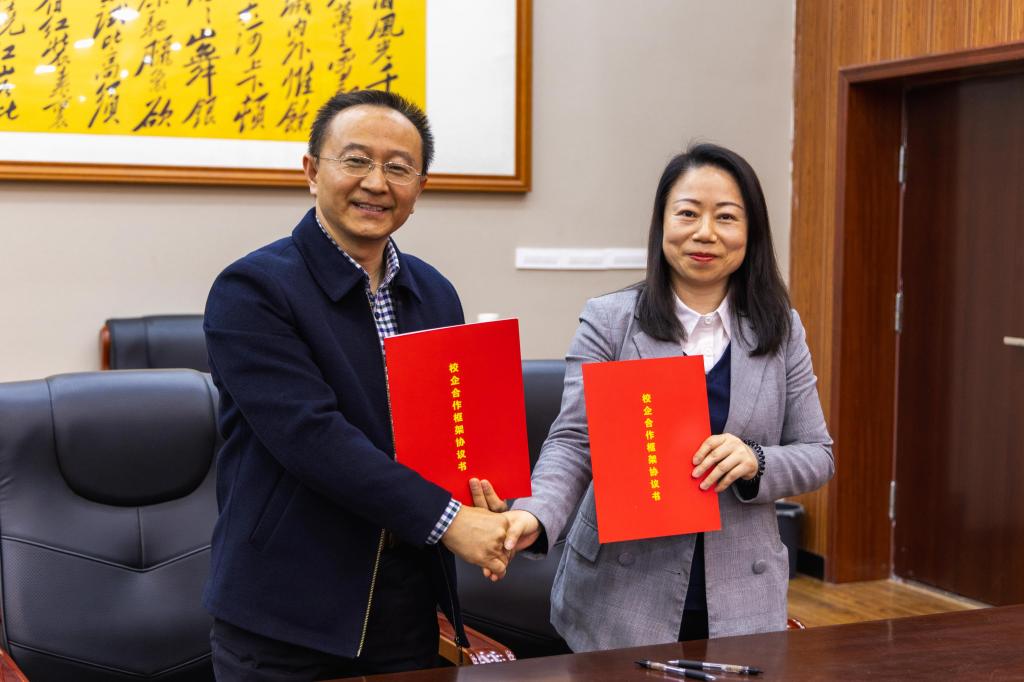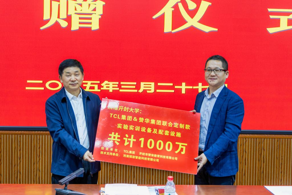 双方共同签署了校企合作协议,TCL集团和开封市赞宋教育科技有限公司共同向365英国上市集团官网捐赠实验实训设备及配套设施,并为优秀学生颁发奖学金。