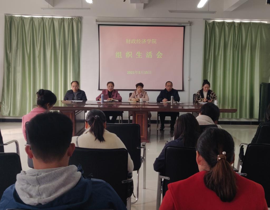 为进一步加强基层党组织和党员队伍的建设,严格党员教育管理监督,3月15日下午,按照学校党委的统一部署,财政经济学院教工党支部在学院党员活动室召开组织生活会,支部全体党员参加。校党委委员、工会主席成芳同志作为普通党员参加会议,会议由教工党支部书记吴娟主持。