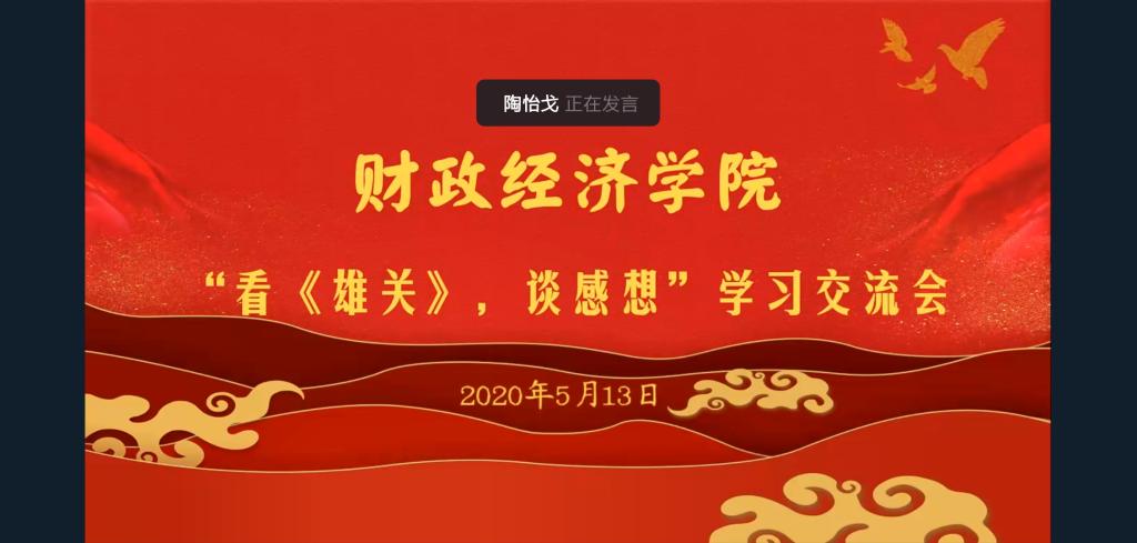 为深入学习宣传贯彻习近平总书记关于统筹推进疫情防控和经济社会发展工作的重要论述,财政经济学院组织全体师生认真收看由省委宣传部、河南广播电视台联合制作的大型电视政论片《雄关》。5月13日中午,学院团总支通过钉钉会议组织召开“看《雄关》,谈感想”学习交流会,院团总支书记薛成,2019级辅导员潘博博、王铭瑾以及团学联全体成员参与活动。