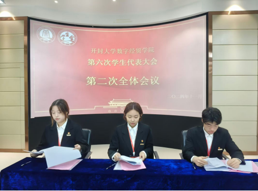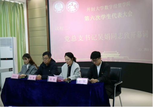 11月22日-23日数字经贸学院在10号楼、15号楼顺利召开第六次学生代表大会。党总支书记吴娟副书记马驰出席会议