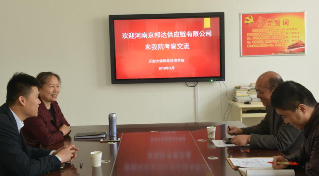 十九大报告中指出要完善职业教育和培训体系,深化产教融合、校企合作。3月29日上午在财政经济学院会议室,李国莉院长与河南京邦达供应链有限公司校企合作部主管林光明先生就开展进一步深度校企合作事宜进行了洽谈,彭旭副院长参加了洽谈会,学校校企合作处杜诗超处长也应邀参加了洽谈会。