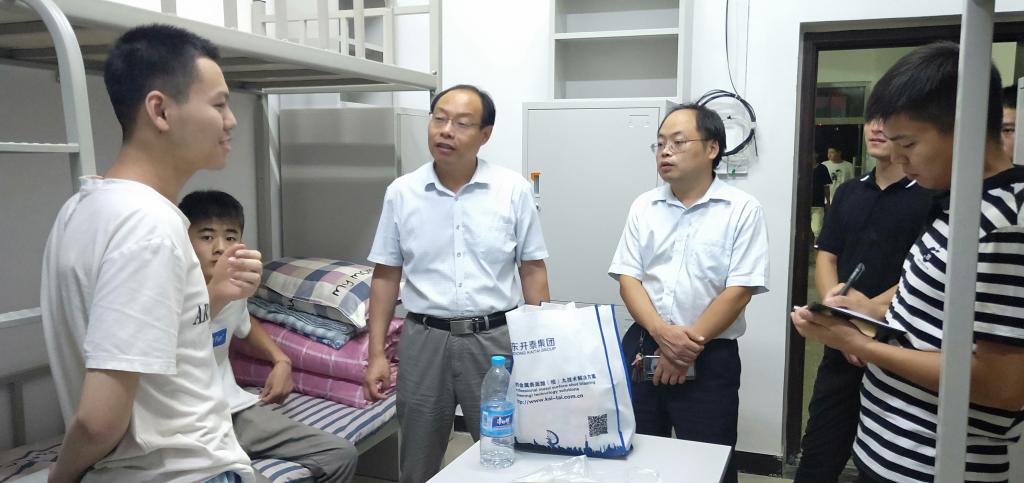 9月7日晚上,学院领导、2019级新生辅导员以及团委学生会干部等一行来到宿舍2号楼和5号楼新生宿舍,看望2019级新生。
