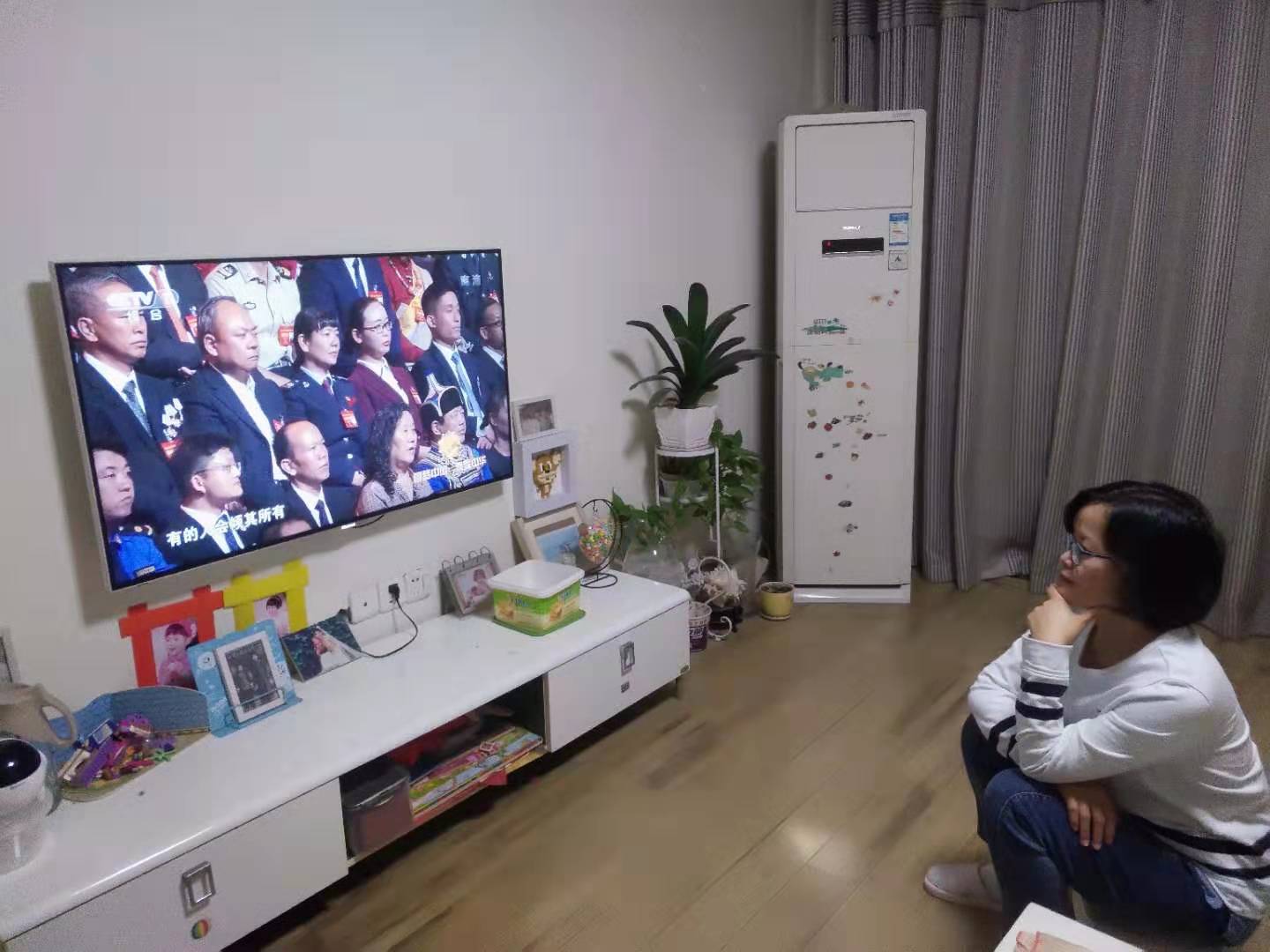 9月15日晚,部分教师在家自行观看直播,并按照要求及时上交学习照片、视频。
