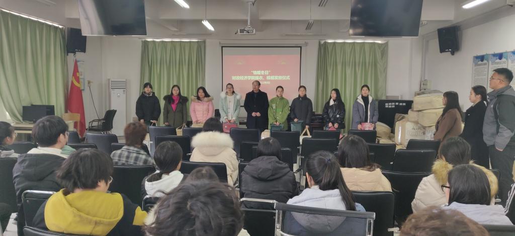 为全面落实国家资助政策,确保2019级家庭困难新生温暖过冬,12月9日,财政经济学院2019年冬寒实物补助发放仪式在十号楼214教室举行。财政经济学院党总支书记赵志成、团总支负责人薛成、各年级辅导员与全体受资助学生参加发放仪式。
