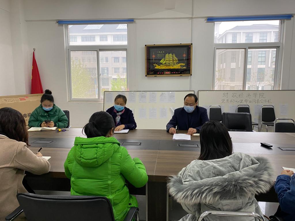 为贯彻落实学校疫情防控工作最新要求,进一步推进疫情防控期间学生教育管理工作,4月10日下午,财政经济学院在10号楼211会议室召开学生工作推进会。学院党总支书记赵志成、院长李国莉、副院长吴娟、团总支负责人薛成及全体辅导员参加会议。